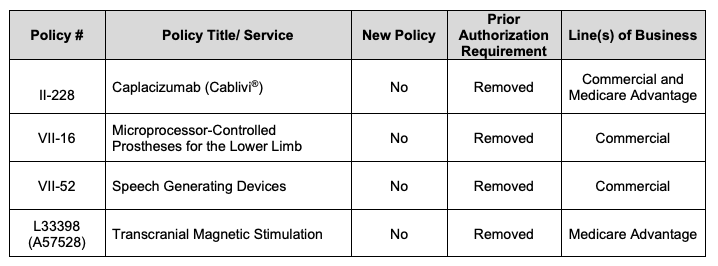 The following prior authorization changes apply to BCBS of Minnesota Commercial and/or Medical Advantage Plan types.