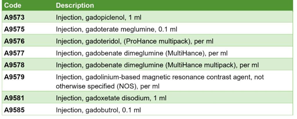 To align closer with this policy Healthfist will NO LONGER reimburse separately for the the following contrast agents used in radiological testing.