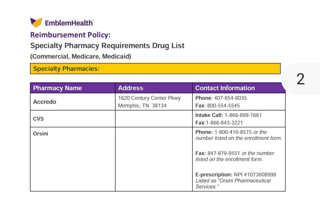 Emblem Health new Specialty Meds/Pharmacy Policy