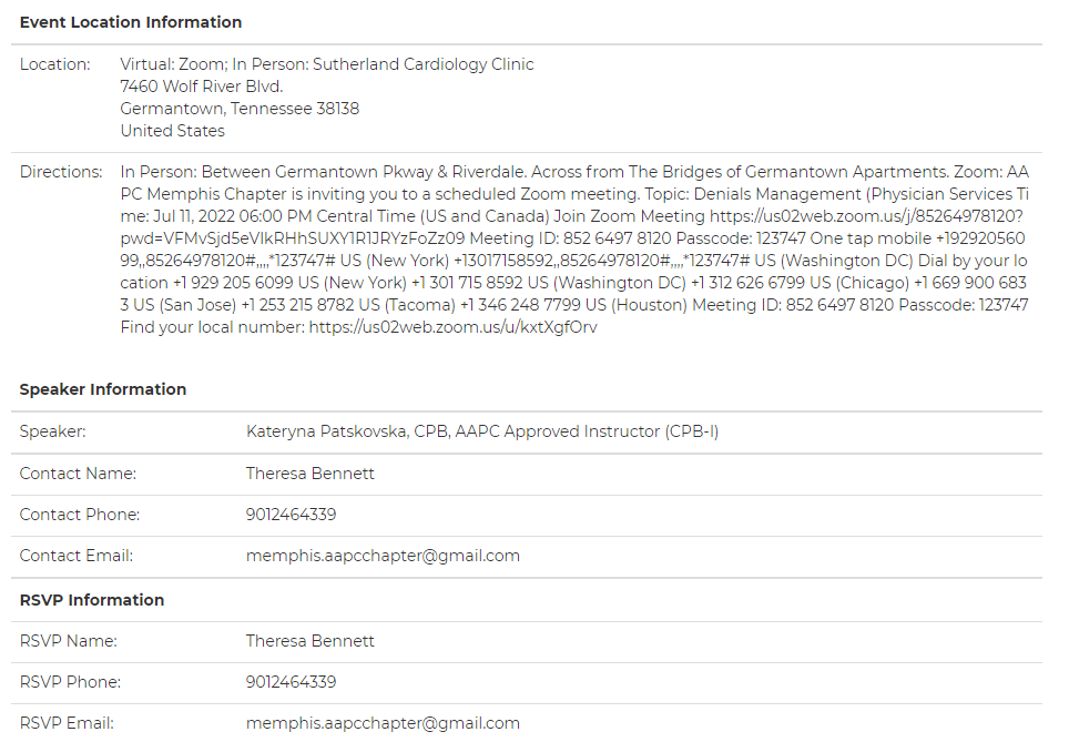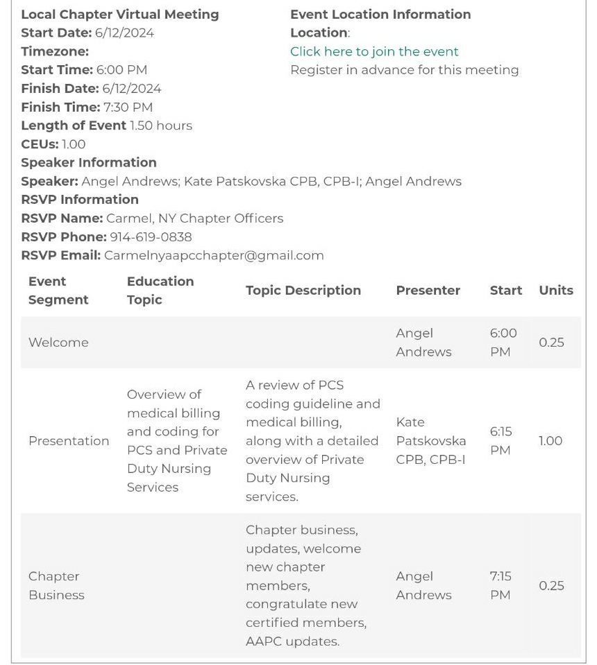 For AAPC chapter: Please use this link to fill out a Request Form. or email me.