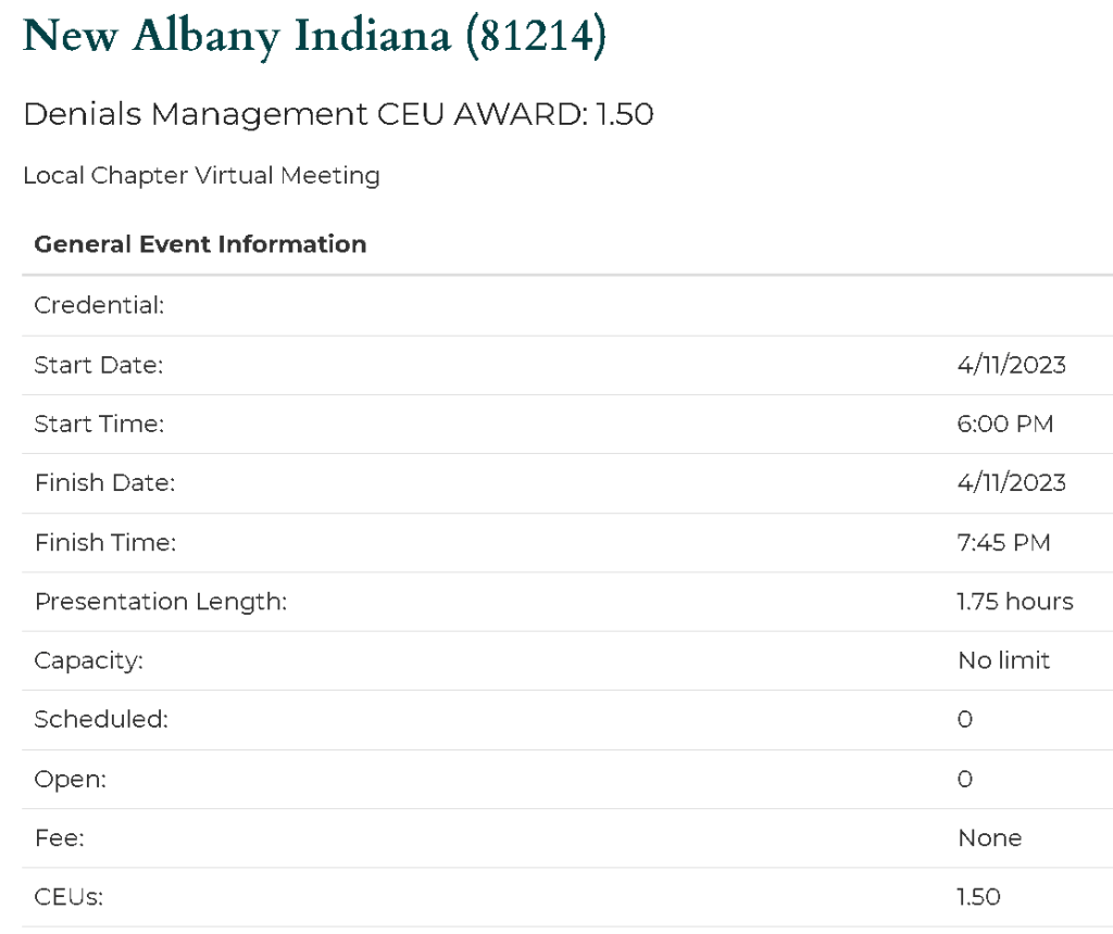 - Orange Irvine, CA chapter 3/20/25- Denials Management