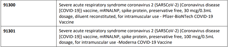 Since COVID-19 vaccines are provided by the government at no charge, Providers should not bill the Vaccine codes (please see below Picture 2). Instead providers should only bill the administration codes (see below Picture 1).